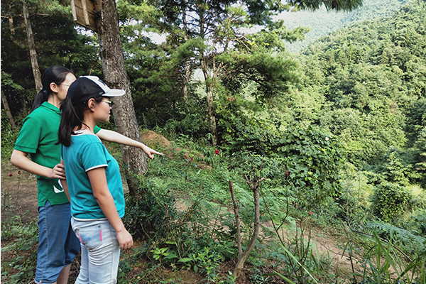 团队沿一条已经开发好的土路向山林前行,对周围沿途的风景及果园、林间小溪进行考察、调研并宣传。了解到,这条土路即将要被修建成公路以便游客欣赏沿途不同的风景。一路上队员们看到了路边各具特色的树木交错相植。益母草、蒲公英等中草药味夹杂着泥土清香扑面而来;绿藤攀绕,竹林遍野,各样的蘑菇也映入眼帘;漫山桃园,路边火棘,各色野花,彩蝶飞舞;箬竹成片,天麻、猪苓等中草药大为开发……这里的每一株生命都是大自然原生态与人工劳动的结晶,都是一方特色,都是一处风景。抬头仰望蓝天,动静相合,动时似荡漾白色泡沫的浮浪,静时似层次错落的沙滩,这里是安心怡神,走进生态,拥抱自然的最好去处,仔细发现,仔细探索,路边的每一株植物,每一个生命都有其可观的价值和作用,西沟旅游,的确别具特色。