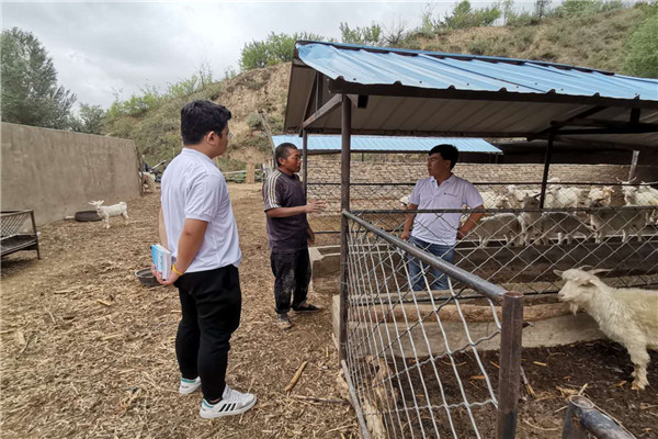 白绒山羊产业是陕北地区产业扶贫的重要项目之一,本次调研对象为当地具有代表性的种养结合养殖户。7月12日,助力团分2组,在科技局干部和当地种羊场场长的带领下,对佳县下辖方塌镇的5家白绒山羊养殖户进行调研。为做好调研工作,助力团设计了专门的调查问卷,对养殖户家庭基本情况、养殖情况、种植情况、生产要素投入、疾病预防、收益情况等进行了详细登记,以期研究在土地和劳动力双重约束下的家庭羊场经营模式在陕北地区得以广泛推广的原因,为形成“养羊脱贫”模式提供可靠依据。助力团还向养殖户赠送了养羊技术资料。