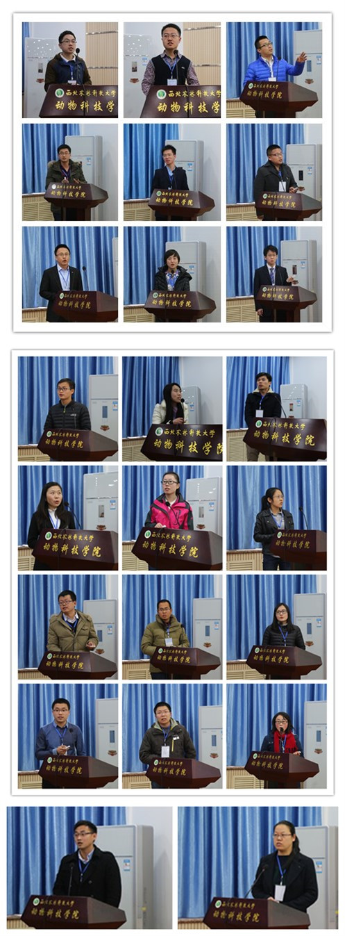 学术报告分别由胡建宏教授、张建勤副教授、潘传英副教授、杨培志副教授主持。来自中国农业大学、中国农业科学院、中科院海洋所、华中农业大学、南京农业大学、东北林业大学、甘肃农业大学以及本校共23位博士生分别以“Effect of rhizobia symbiosis on lignin levels and forage quality in alfalfa (Medicago sativa)”、“农牧交错带不同土地利用方式对水资源丢失的影响”、“piRNA介导的温度依耐性PolyA加尾机制的研究”、“超级细菌甲氧西林抗性金黄色葡萄球菌(MRSA)抗药性与抗性基因传播机制研究”、“EPA调节草鱼脂肪细胞脂代谢稳态的在体离体研究”等为主题做了精彩的学术报告。陶士珩教授等七位评审对报告人的研究方法、结论凝练等方面进行了现场点评。