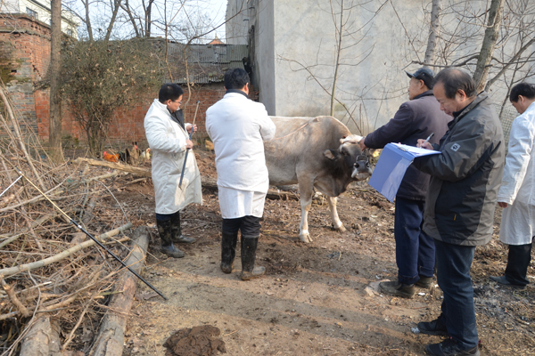 1月11日-13日,在南阳市新野县畜牧局聂翀局长、陈风川主任、齐香萍副主任的陪同下,在新野县皮南牛标准化示范场清水湾生态养殖合作社、皮南牛主产区王庄镇和前高庙乡的6个村调查了皮南牛的种群规模、品种特性、生长发育、存栏数量、体型外貌和饲养管理等情况,并考察了企业的标准化厂房、青贮池、饲料库。陈宏教授与陈风川主任、齐香萍副主任就皮南牛的优势及存在的问题进行了深入探讨与交流,对皮南牛的选种、选育提高及杂交繁育提出了建设性意见。