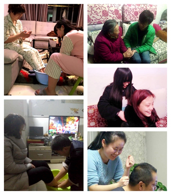 分享感恩 蜕变成长。此次感恩活动的开展,使同学们内心受到了极大的触动,受益良多。草业151班顾振杰说:“真正到为自己的父母做事的时候,我才发现,自己能为父母做的那么少,然而父母却为我们付出了那么多,只是他们从来不说,就被我们忽略了而已”。动科154班索朗普尺同学表示,“生活贫苦的父母始终辛苦劳作,来供自己上学,寒假期间,自己在帮他们劳作的期间,才深切体会到了他们的艰辛与不易,父母已佝偻的身躯,是自己今后努力的动力,自己定不会让他们失望”。动科156班张泽希说:“自己从来没有想到,仅仅是一件小事而已,就可以让家人这么的满足,那一刻才发现,作为即将要承担起这个家的我们,真的该为家里做些什么了。”水产152班程千里说:“为父母洗一次脚是我一直以来都想做的一件事,但是碍于自己所认为的“面子”都没能做到,这次终于鼓起勇气,当自己蹲下身为母亲洗脚的那一瞬间,母亲的感动让我再次感到羞愧,羞愧的是这一刻我做的太晚了”。