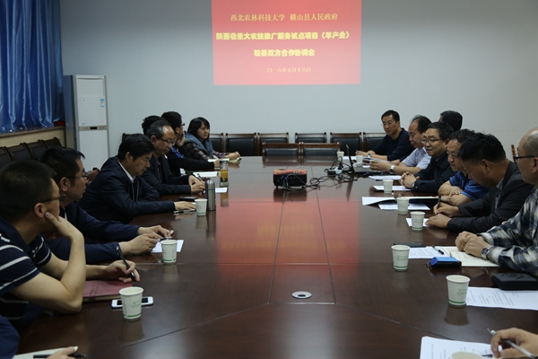会前,钱永华副校长会见了杜修洲副县长一行,并介绍了我校承担该项目的背景和执行情况。会上,校推广处吴锋副处长就立项背景、顶层设计、目标任务、三站设置、运行管理、经费使用等做了总体说明,对项目实施提出了具体要求。项目首席专家曹斌云教授介绍了陕西省羊产业总体实施方案;榆林区域站负责人陈玉林教授介绍了陕北白绒山羊研究与示范工作基础;横山县副县长杜修洲、县畜牧局局长张秉忠介绍该县绒山羊产业发展及科技队伍情况,并对陈玉林教授近年来在横山开展的科研工作表示了肯定,并希望加强进一步和合作。会后,横山县来访人员一行参观了西北农林科技大学绒毛用羊科研创新团队实验室。