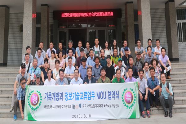 8月8日,由韩国种畜改良协会会长李在容、副会长郑用浩以及韩国江原国立大学农业资源经济系李炳旿教授率领的韩国牛业代表团队一行30人来我校访问交流,洽谈合作事宜。学院副院长、国家肉牛改良中心主任昝林森教授,牛业团队刘小林教授、辛亚平副教授、孙秀柱副教授、江中良副教授、赵春平副教授、杨武才副教授以及团队在校博士后和研究生参加座谈会和学术交流活动。