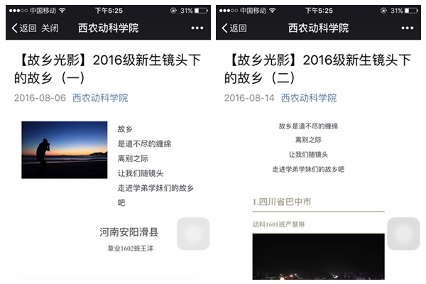 为做好新生入学前答疑,学院建立新生QQ群、易班群、新生家长群,全体辅导员、班主任、班主任助理入驻群内为新生答疑解惑。同时,学院微信平台为新生开设展示自我的平台,特推出“故乡光影系列之2016级新生镜头下的故乡”专题,13名新生利用假期,拍摄照片展示故乡文化,将新生归属感的建立提前到假期新生未入校前。同学们彼此学习,相互交流,更通过开展丰富多彩的网上迎新活动,让新生对学校、学院、专业做到提早、全面、客观的了解。