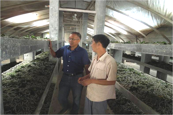 苏超研究员指导示范户养蚕