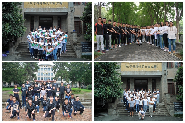 新生日的早晨细雨蒙蒙,2016级新生们开始了“快乐新生日”的第一项内容:“我们的班级记忆”创意合影。古老的三号教学楼、别致的图书馆、高大的八号教学楼、美丽的喷泉广场。独特的的五台山阶梯。5个标志性美景,10个朝气蓬勃的新生班。伴着雨后清新的桂花香甜,同学们纷纷以班级为单位,发挥想象力,摆出各种创意造型,留下了属于各班的独家记忆。