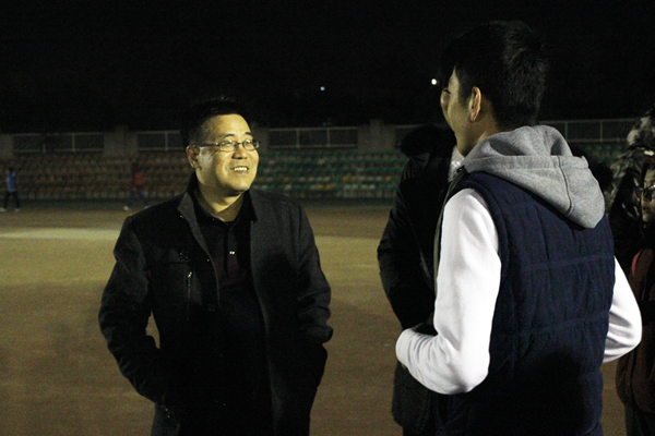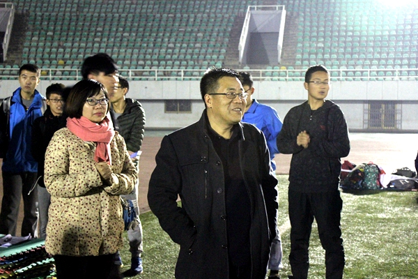 12月6日下午,百家乐策略 党委书记赵延安、党委副书记王晓娟在全体专职辅导员及团学干部陪同下,前往田径场慰问百家乐策略 正在进行冬训的队员们,并与同学们亲切交流。