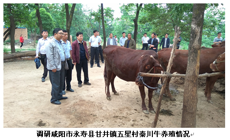 5月21日,在咸阳市扶贫办刘辉主任等领导的陪同下,昝林森教授一行场查看了永寿县甘井镇五星村群众养殖肉牛的生产现状,了解了该村的基本情况、致贫原因、肉牛养殖历史。在与市、县、镇、村扶贫干部、包抓部门负责人、市县金融单位领导及贫困户代表座谈时,昝林森指出,要充分发挥当地养殖基础好的条件,利用本次科技扶贫契机,抓好肉牛生产转型升级和提质增效工作,加快贫困群众脱贫致富步伐;同时强调,要加强顶层设计,积极稳妥推进。