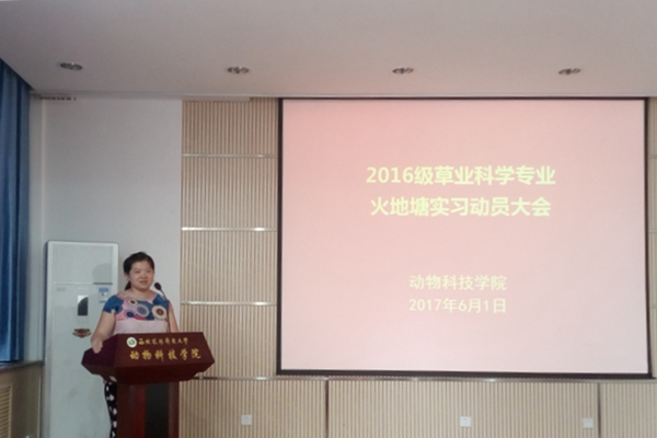 最后,学院党委副书记王晓娟做实习大会总结,她重点强调了实习安全问题,要求同学们要服从命令听从指挥,绝不可擅自行动。并嘱托学生干部扛起担当,负起责任,“守好一段渠,种好责任田”,充分发挥关键少数的模范带头作用。她希望2016级草业科学的同学们能够继承发扬草业人的优良传统,谦恭有礼,精诚协作,做到有风度,有温度,不怕苦,不怕累。充分把握实习机会,在实习中收获知识,在实践中增长才干。