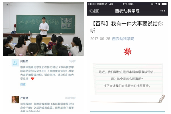 为进一步加强学生对本科教学审核评估的深入了解,在全院范围内营造“人人关心评估、人人了解评估、人人参与评估、人人支持评估”的浓厚氛围。近期,学院通过线上线下、班会讨论等灵活多样的形式开展本科教学审核评估应知应会知识普及,同学们参与其中、认真学习、全面掌握,为迎接评估做好全方位的充足准备。