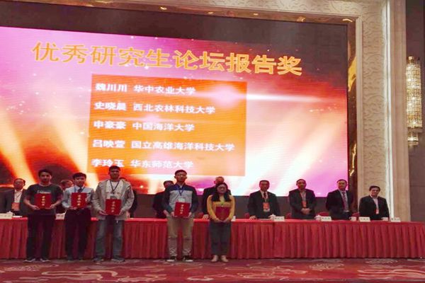会议期间,吉红教授团队师生充分展示了近年来的研究成果,并与参会代表进行了广泛交流。吉红教授应邀担任大会第二分会场主持人,并做了题为“DHA以PPAR γ依赖方式诱导草鱼脂肪细胞凋亡”的报告。研究生论坛上,硕士研究生史晓晨做了题为“ α–硫辛酸通过调控AMPK与mTOR信号通路促进草鱼脂肪水解与蛋白质合成 ”的报告,并获得了优秀口头报告奖。常志光、靳艾、刘阳洋及徐歆歆等同学进行了墙报展示,受到了参会人员的广泛关注。