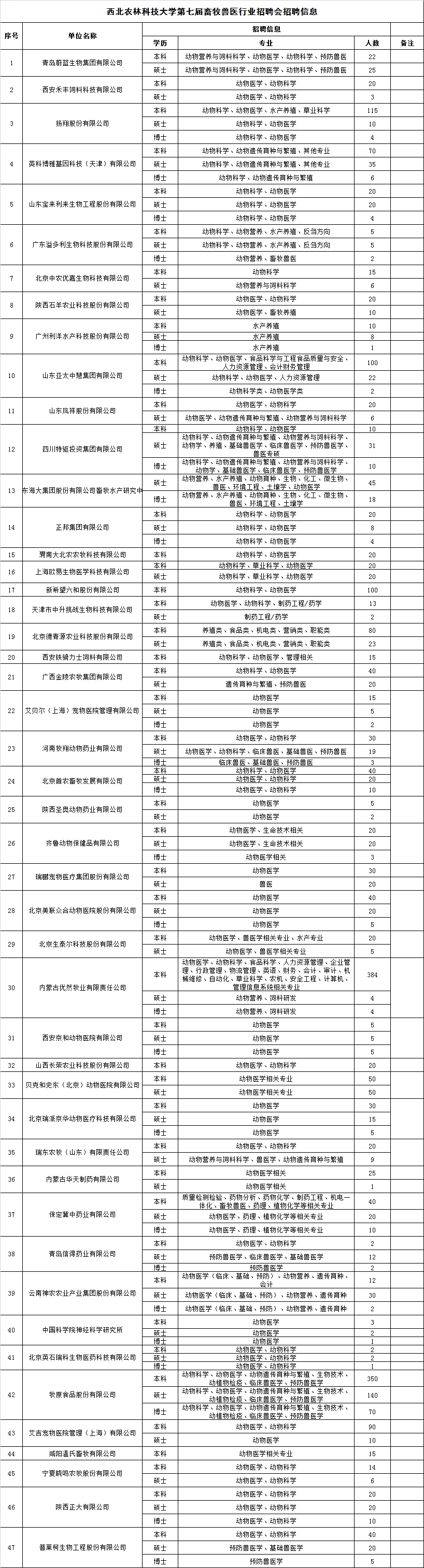 此外,百家乐策略 与动医学院将于11月25日在北绣山活动中心联合举办西北农林科技大学第七届畜牧兽医行业招聘会,为2018届毕业生求职营造浓烈的氛围,为低年级学生开拓视野、提前了解行业发展提供广阔的平台。截止目前,已收到来自全国截止目前,已收到来自全国15个省(自治区、直辖市)的47家企事业单位的回执,累计提供就业岗位3002个,不仅包括动物科学、草业科学、水产养殖、饲料营养、动物医学等专业,还包括食品科学与工程、食品质量与安全、生物工程、生物技术、信息管理与信息系统、环境工程类、会计学、市场营销、国际经济与贸易、人力资源、公共事业管理等人文类及机电相关专业。