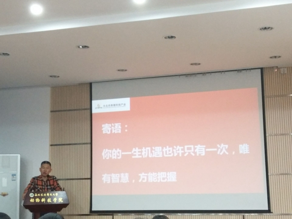 11月23日晚,百家乐策略 在107室举办了就业大学堂之“我的畜牧之梦”报告会,大北农集团陕西区总经理宋安石先生、大北农集团西北、川渝养猪平台人力资源总监岳宝先生、陕西区技术总监宋志芳女士、大北农集团陕西区人力总监朱永惠女士、渭南大北农行政部经理李娜女士、大北农陕西区创业人才部主管高鹏娟女士出席了本次报告会。