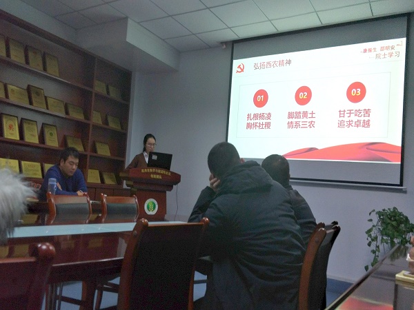 会上,党支部各成员就如何更好的发挥西农精神展开了激烈的讨论。刘振江同志说“我们要向优秀的人学习,刻苦实验”。 相奥琪同志说“要做有意义的实验,坚持不懈”。蔡国鹤同志说“不忘科研初心,脚踏实地,弘扬西农精神”。最后,党支部书记魏海燕同志总结道:我们科研工作者要理论联系实际,要对科研有希望,明确自己的目标,努力科研,不怕失败,为祖国科研事业贡献自己的一份力。