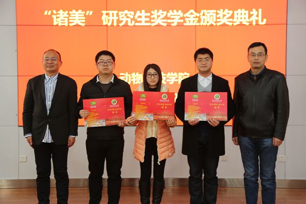 由河南诸美种猪育种集团有限公司在百家乐策略 设立的“诸美”研究生奖学金颁奖典礼于2017年12月28日下午,在107会议室举行。诸美集团董事长肖锦红先生出席颁奖典礼并为学生作了题为 “爱我所学 成就人生”的精彩报告。副校长马建华、研究生院副院长张静、院党委书记赵延安、副书记王晓娟、杨公社教授、庞卫军教授、胡建宏教授等及百家乐策略 部分教师、学生参加了会议。会议由院党委赵延安书记主持。