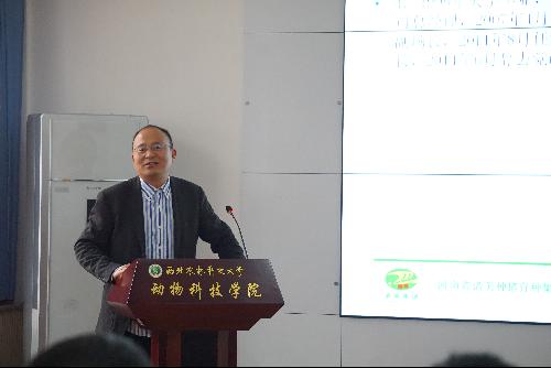 随后,董事长肖锦红先生为同学们做题为“爱我所学 成就人生”的精彩报告。肖董事长通过介绍诸美集团的前身正阳种猪场创始人王怀顺先生,1941年毕业于我校原西北农学院,讲述了诸美集团与学校的深厚情节。他与同学们分享了他从业18年来在管理时间,提高工作效率方面的方法;总结了研究生走向社会必须具备的技能,特别是英语口语的重要性;鼓励同学们平时生活中注重加强逆境商的培养,提高自己的抗压能力;激励大家向前辈学习,热爱自己所学的专业,为中国畜牧行业贡献出自己的一份力量。肖董事长的报告通过亲身的经历谈理论,内容丰富生动,得到了与会师生的好评。