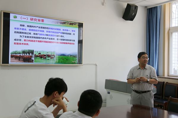 副院长昝林森教授汇报了他主持的“优质肉牛高效安全养殖技术应用与示范”项目的课题设计、目标任务、拟解决的关键技术、预期成效及项目创新点等情况。张恩平教授、庞卫军教授也分别介绍了自己主持的国家重点研发计划课题的工作进展,所取得的成效及下一步的工作计划。