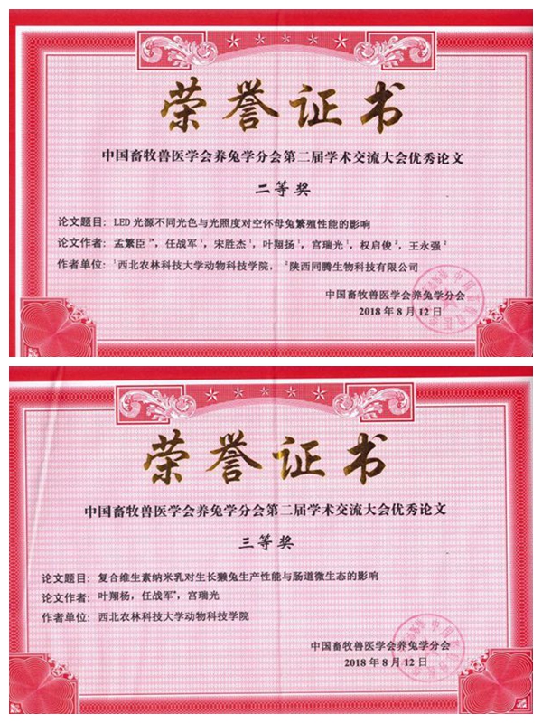 大会评出“纳尔杯优秀论文”一等奖4名,二等奖4名,三等奖7名。由百家乐策略 任战军副教授指导的研究生孟繁臣等完成的题为《LED光源不同光色与光照度对空怀母兔繁殖性能的影响》的论文获得大会二等奖,由叶翔杨等完成的题为《复合维生素纳米乳的制备及其2~3月龄獭兔生产性能及肠道微生态的影响》的论文获得大会三等奖。