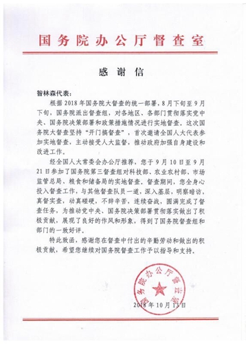 最近,国务院办公厅督查室专门致信,感谢我校全国人大代表昝林森教授在参加“2018年国务院大督查”活动中所付出的辛勤劳动和做出的积极贡献。