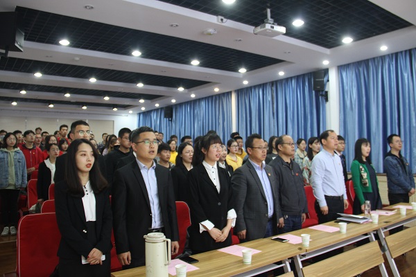 启动仪式上,学院党委副书记王力、马克思主义学院胡尊让副教授分别为新入职辅导员和新发展学生党员佩戴党徽。全体党员在学生党员张国宇的带领下重温入党誓词。