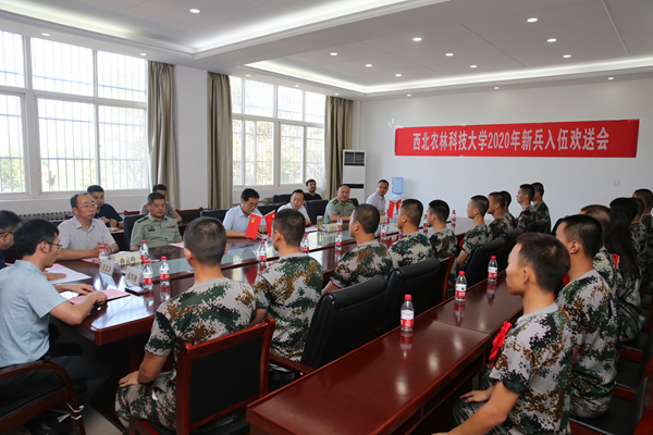 9月7日下午,学校在陕西征程国防教育基地召开2020年新兵入伍欢送会,与在此参加集训的19名参军入伍学生座谈。其中百家乐策略 有3名学生光荣入伍并参加座谈会。校党委副书记闫祖书、党委学工部部长(人武部部长)王文博、杨陵区武装部政委李鸿剑、杨陵区武装部部长李正文、学院党委副书记王力和相关负责同志参加了座谈会。