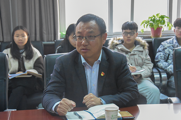 “曾鑫同学是一名优秀的共产党员!”院党委书记曹军会与“非西藏生源定向西藏就业计划”学生曾鑫座谈时这样谈到。1月4日下午,学院在动科楼113会议室召开欢送2020届毕业生曾鑫进藏工作座谈会。院党委书记曹军会、进藏学生曾鑫和18位团学骨干齐聚一堂,畅聊人生规划。院党委副书记王力主持座谈会,全体专兼职辅导员参加座谈会。